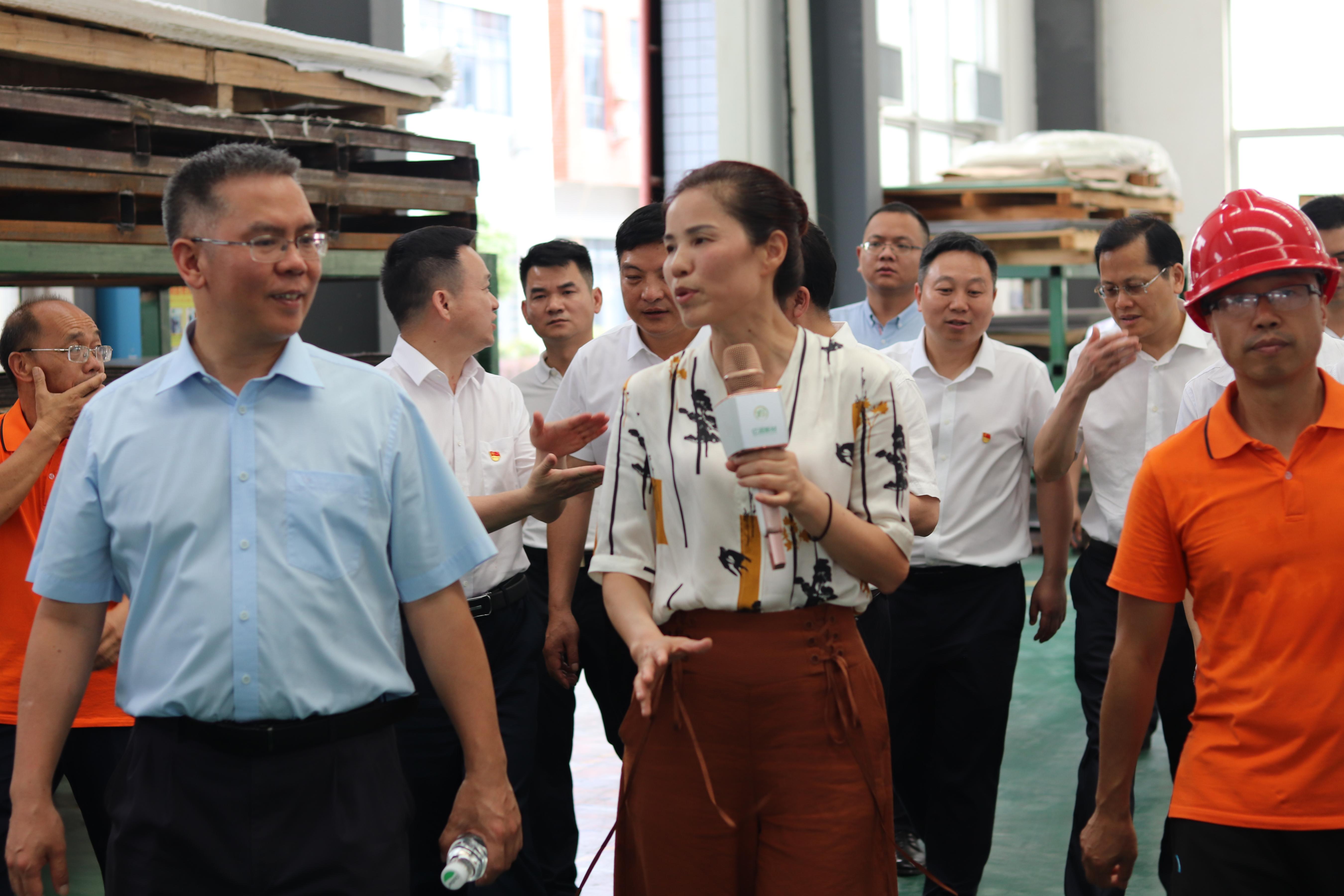 辛丑年仲夏初七下午,正值高温酷暑。株洲市委书记曹慧泉、市委秘书长何朝晖率部分市领导和相关单位负责人一行,莅临湖南亿润新材料科技有限公司视察调研生产经营和企业规划发展工作,茶陵县委县政府领导、茶陵经开区领导、湖南亿润新材创始人兼总经理李慧女士陪同视察。
