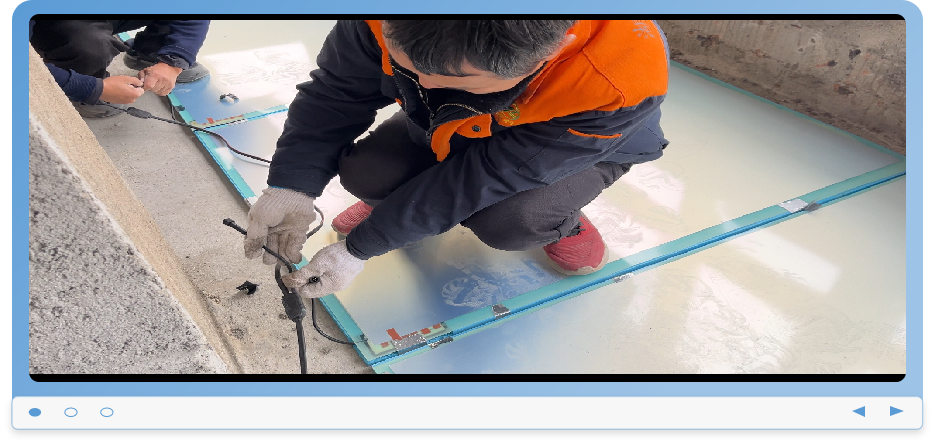 按顺序将主电缆线母头与各发热板公头一个一个联线连接好,并把电缆线藏在发热板预留的空槽位置。