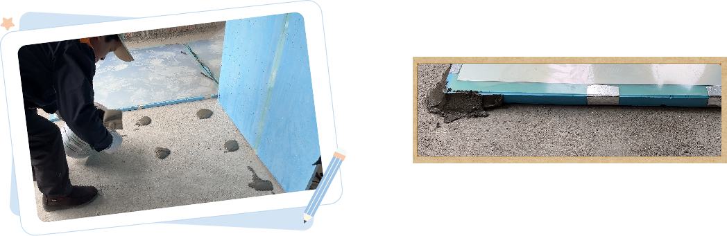 瓷板胶与水充分搅拌均匀配制瓷板胶液,把胶液滴在水泥地面上,将保温板平铺固定。